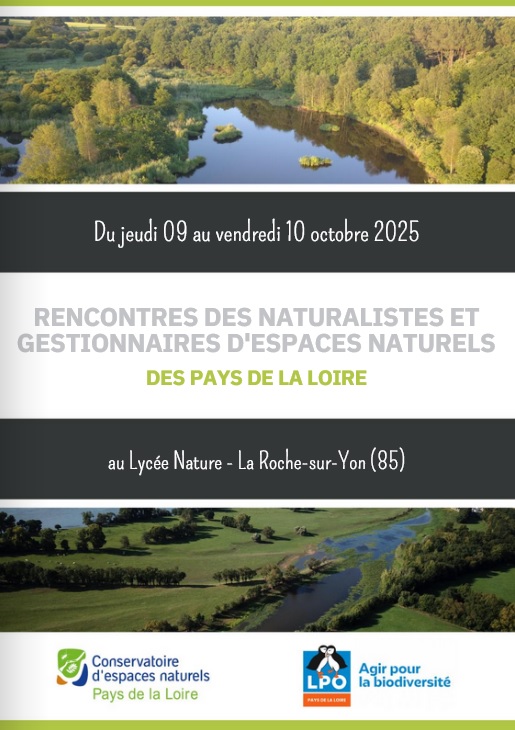 Les 9 et 10 octobre prochains auront lieu les rencontres régionales des naturalistes et gestionnaires d’espaces naturels des Pays de la Loire, organisées par le Conservatoire d’Espaces Naturels des Pays de la Loire et la LPO Pays de la Loire.