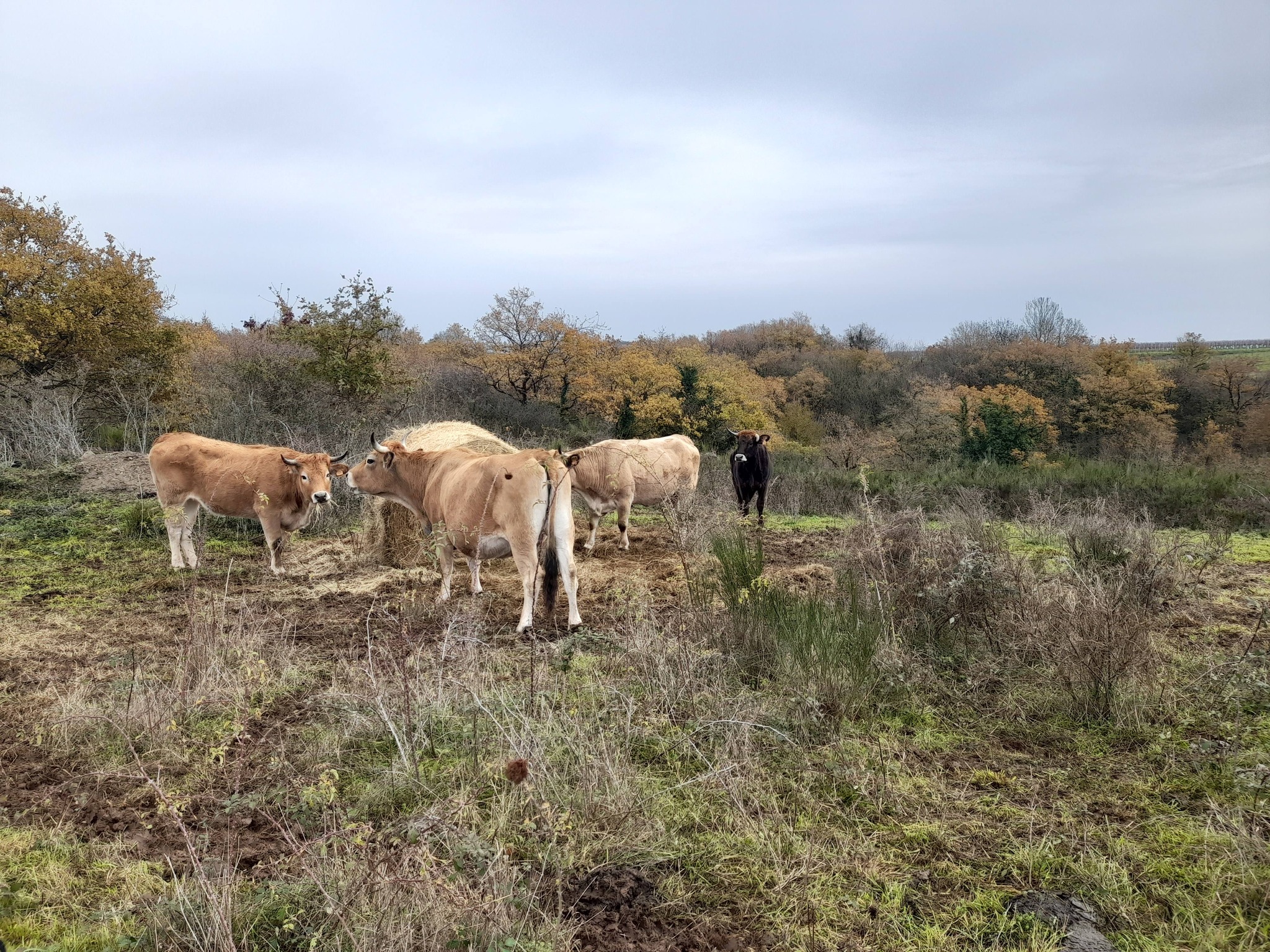 Mais cet automne ce sont nos vaches maraîchines qui sont en pâturage et elles font un travail remarquable, notamment sur les Brachypodes, qui une fois trop mûrs sont délaissés par les moutons.«