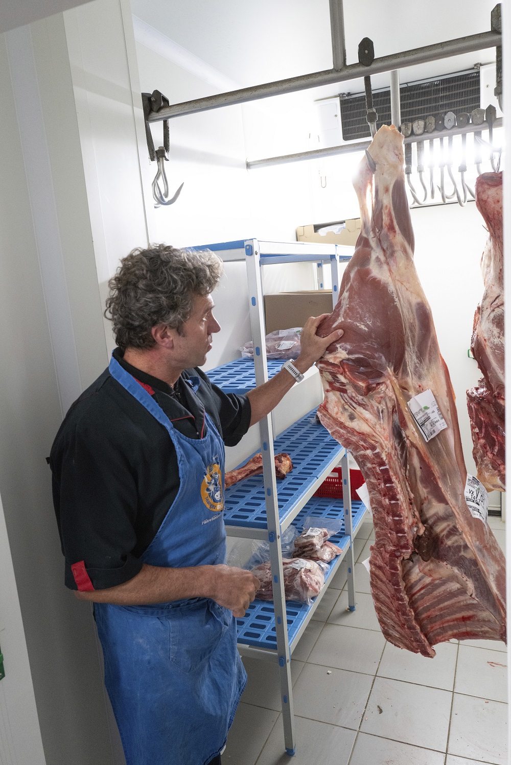 L’après-midi le groupe s’est rendu à la Biocoop Maraîchine (Challans) pour observer la découpe d’une demi-carcasse de veau par le boucher du magasin, Drian Avoine.